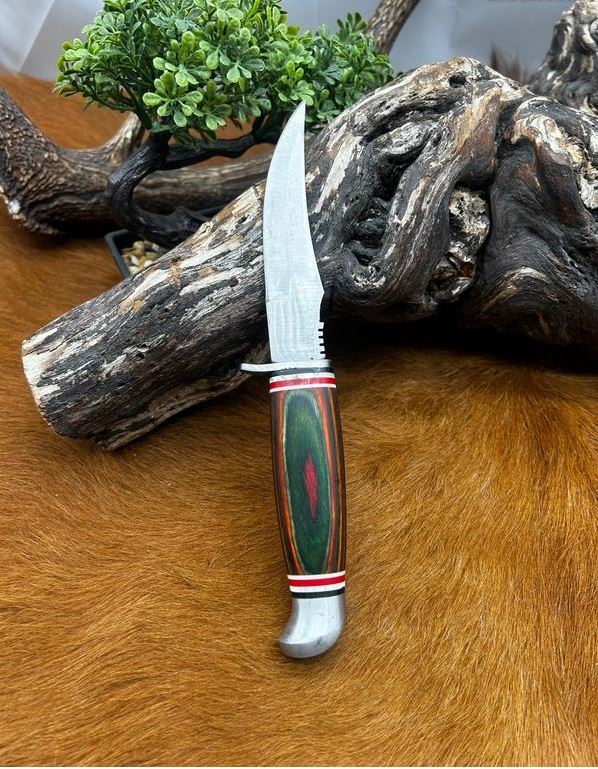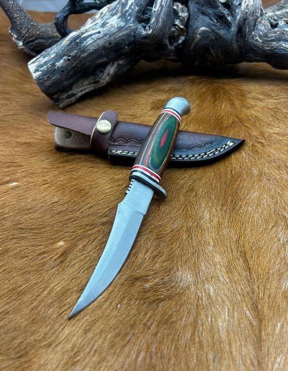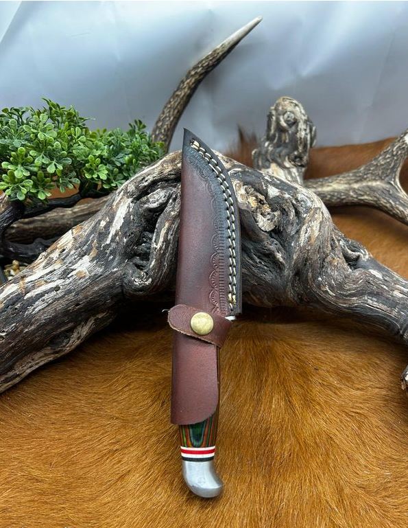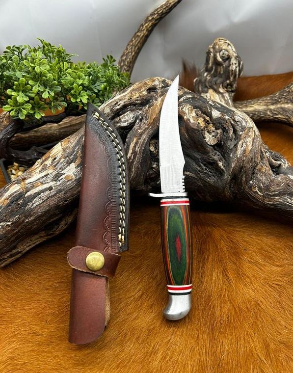 couteau fixe lame en acier 440 taille de la lame : 12 cm taille totales: 22 cm etui en cuire
