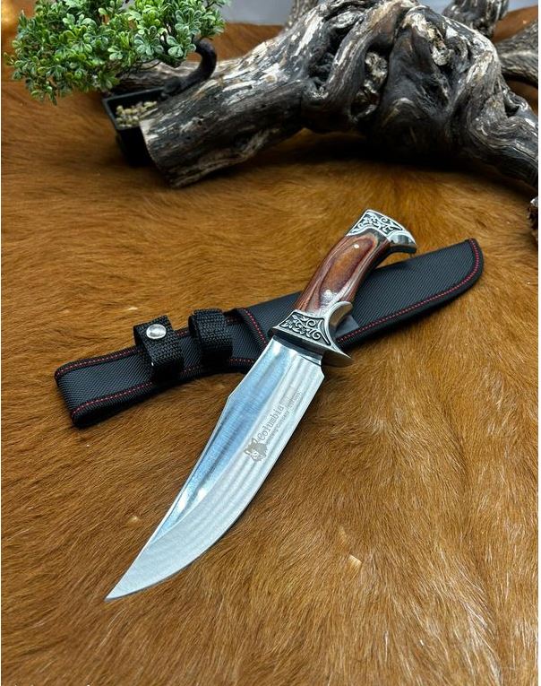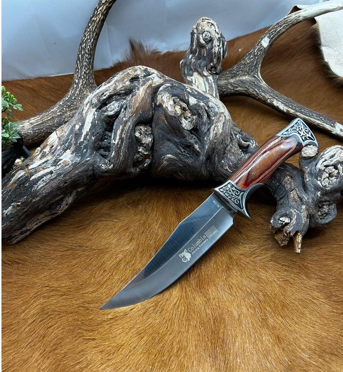 couteau fixe Columbia manche en bois avec garde et pommeau en acier