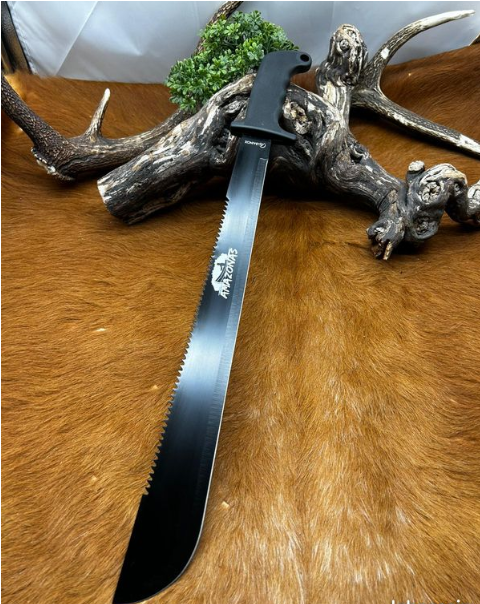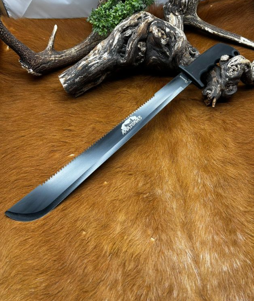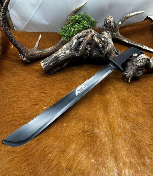 Nom: AMAZONAS Taille de la lame: 46.00 cm Taille de la poignée: 13.30 cm Taille totale: 59.30 cm Type de poignée: Caoutchouc/Noir Étui: Nylon/Noir