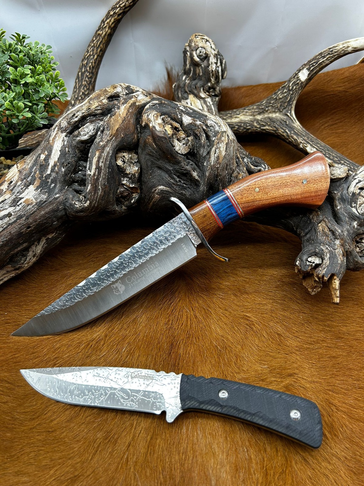 Couteau fixe Columbia manche en bois avec garde et pommeau en acier
