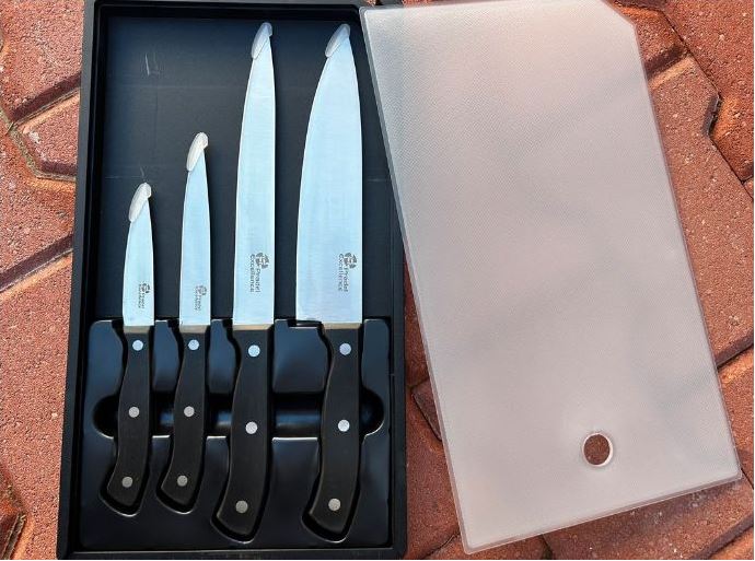 URBAN - SET DE 4 COUTEAUX CUISINE DANS UNE BOITE PLASTIQUE AVEC PETIT AIGUISEUR INTEGRE
