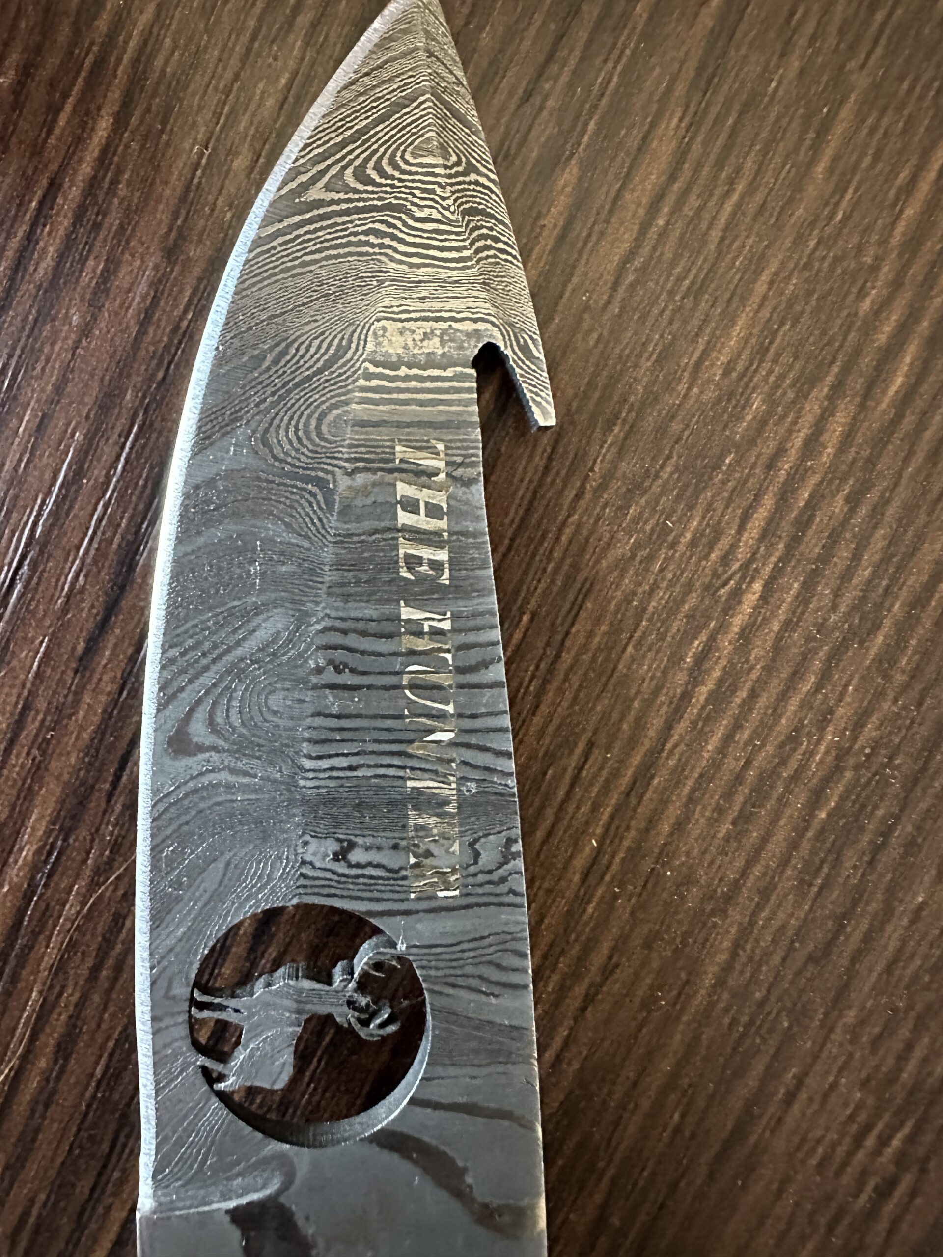 Lame en acier Damas 256 couches avec Cerf découpé au Laser